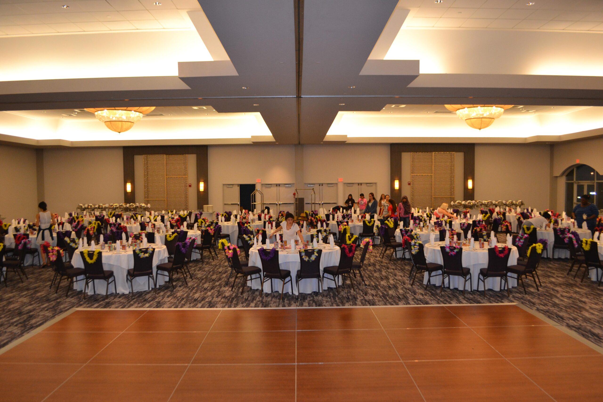 Balloons were strung up from every table with the yearly ongoing Hawaiian theme: palm trees, turtles, and hula-girls floated around the room. As the class stepped through the doorway, the music was already blaring, the food was ready to be served and the room was full of anticipation.